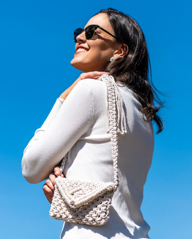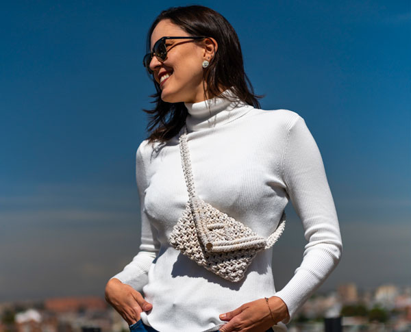 “Cada bolsa que eu crio nasce de um olhar atento aos detalhes e de uma relação muito íntima com o fazer manual. Para mim, o macramê não é apenas uma técnica — é uma forma de transformar tempo e matéria-prima em peças que carregam identidade, elegância e história.”