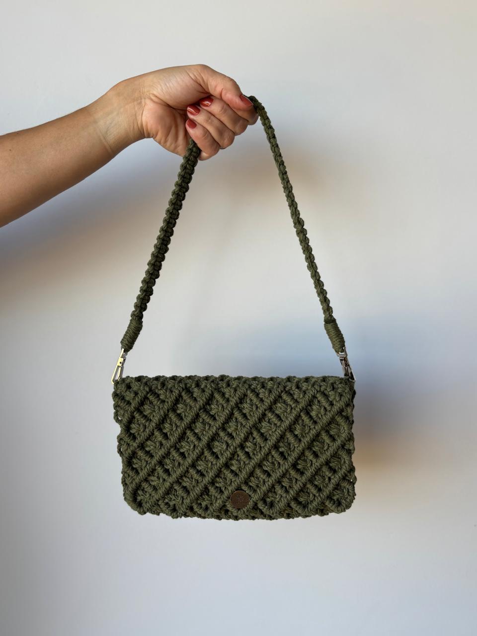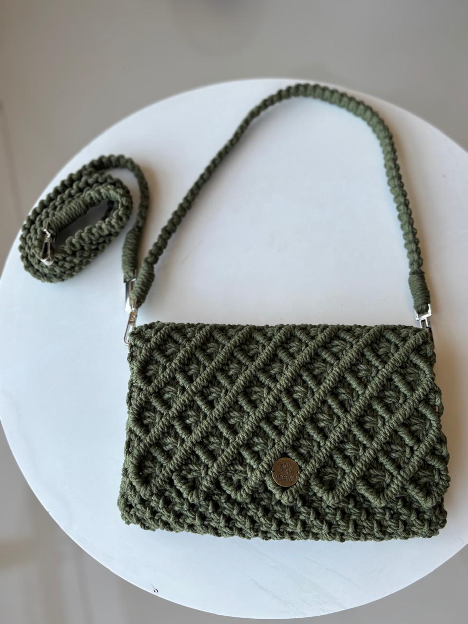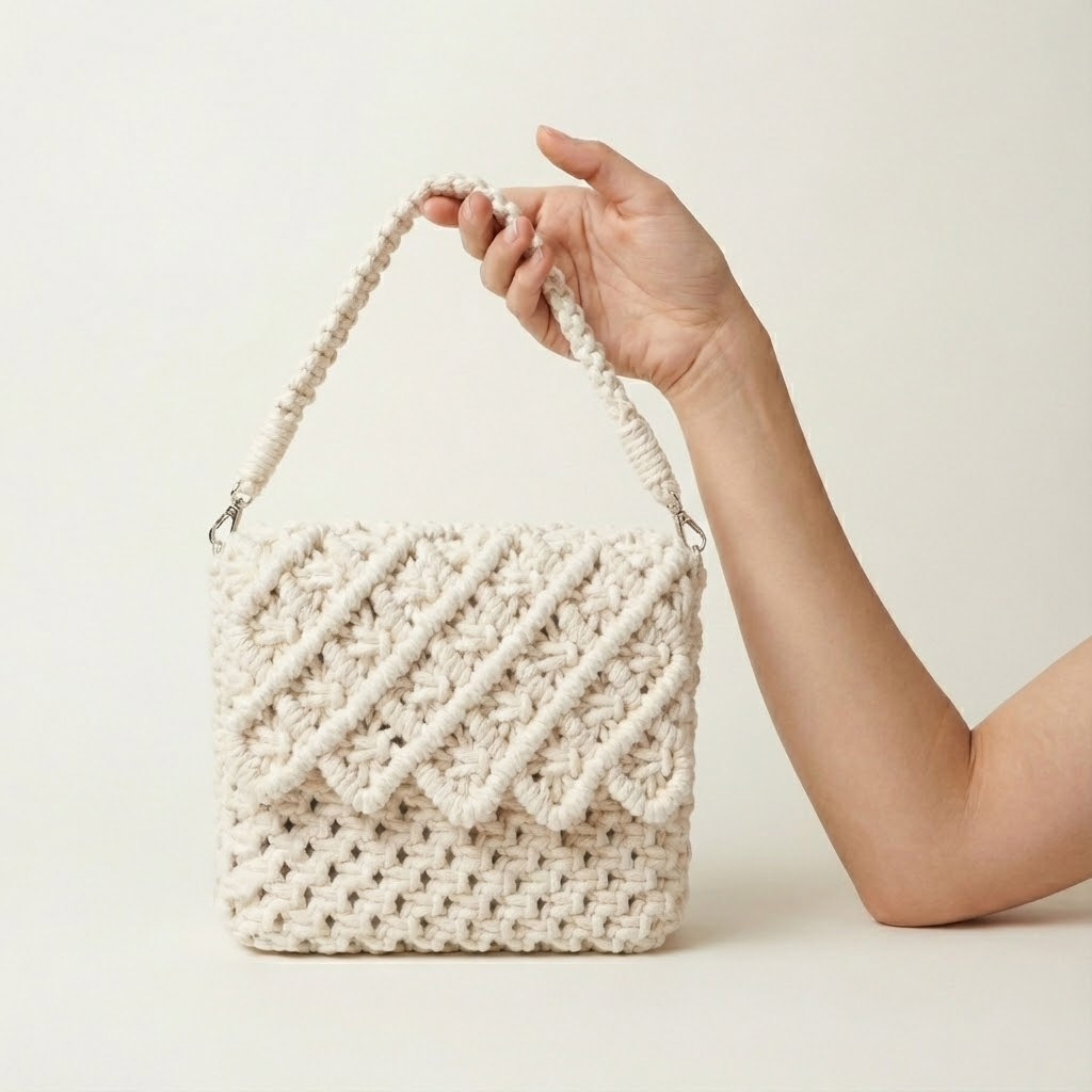 Quando o nó se torna joia. Sob as luzes da noite, a complexidade do macramê da Bolsa Lolita se revela em texturas esculturais. Uma peça compacta, mas de impacto gigante, feita para acompanhar jantares, casamentos e eventos onde o detalhe é o protagonista.
