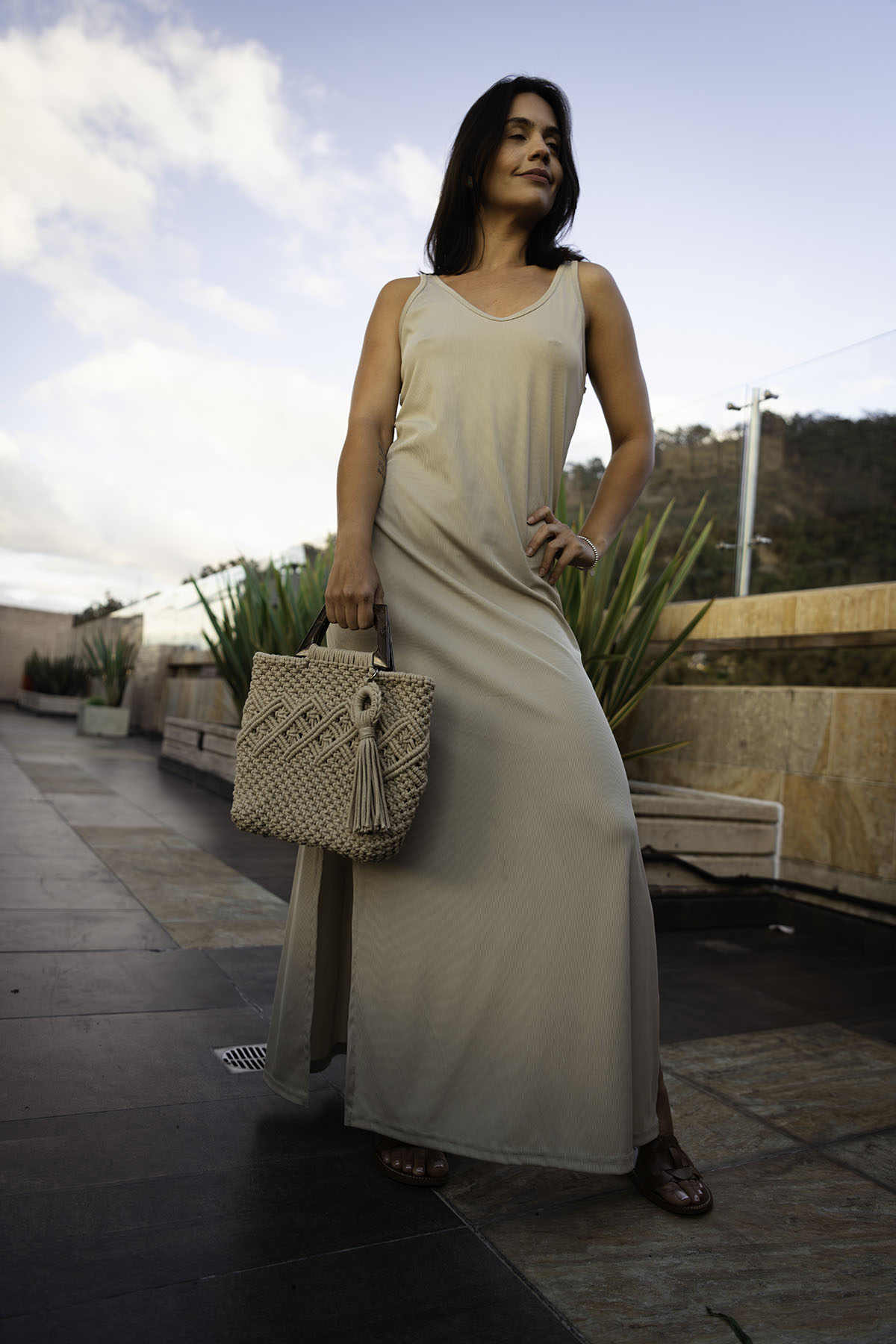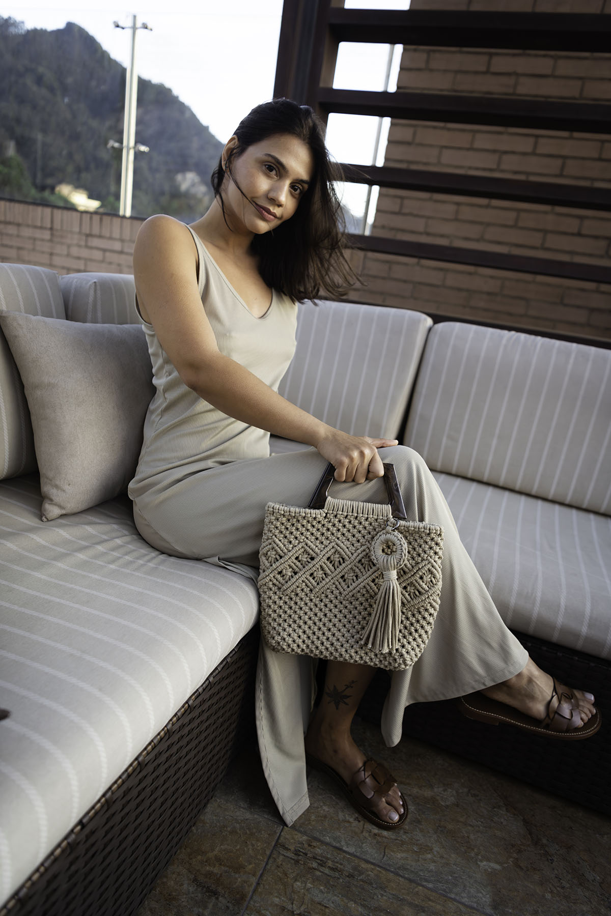 Sua trama robusta eleva o básico — seja um jeans com camisa branca ou um vestido de linho — transformando o visual em uma declaração de arte. É o equilíbrio ideal entre o rústico e o chique.